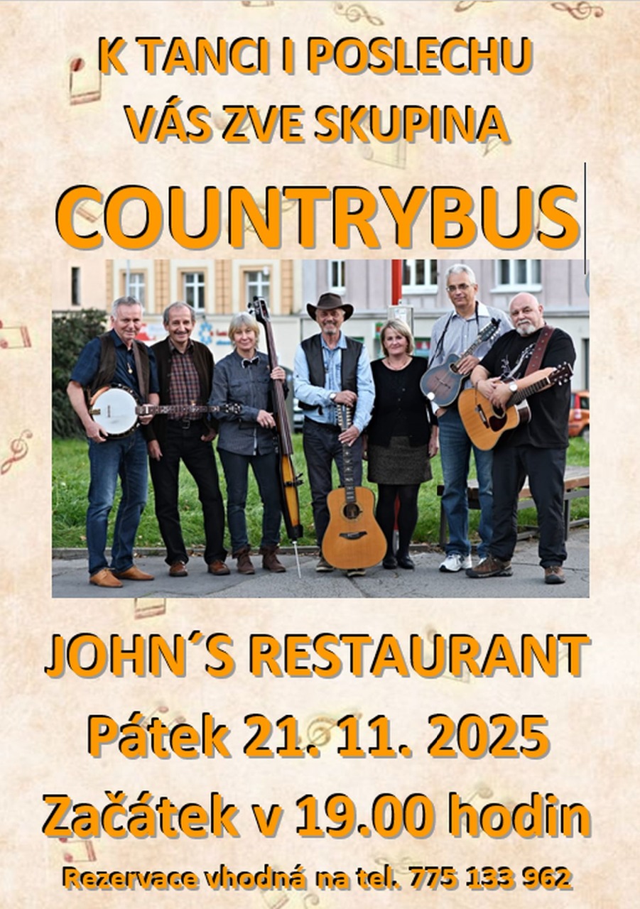 Zveme všechny příznivce country muziky do Želenic, konkrétně John´s Restaurant se v pátek 21. listopadu rozezní tóny tohoto hudebního žánru. Začátek je v 19.00 hodin.